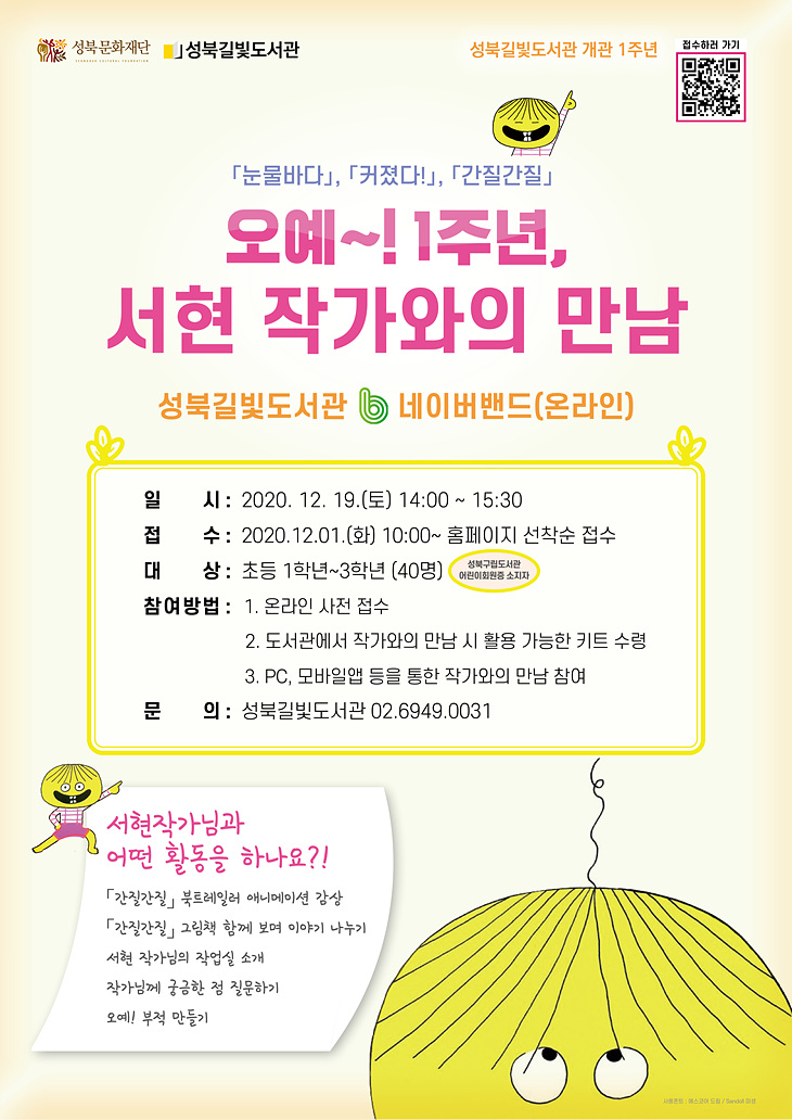 성북길빛도서관 개관 1주년 오예~! 1주년, 「간질간질」 서현 작가와의 만남