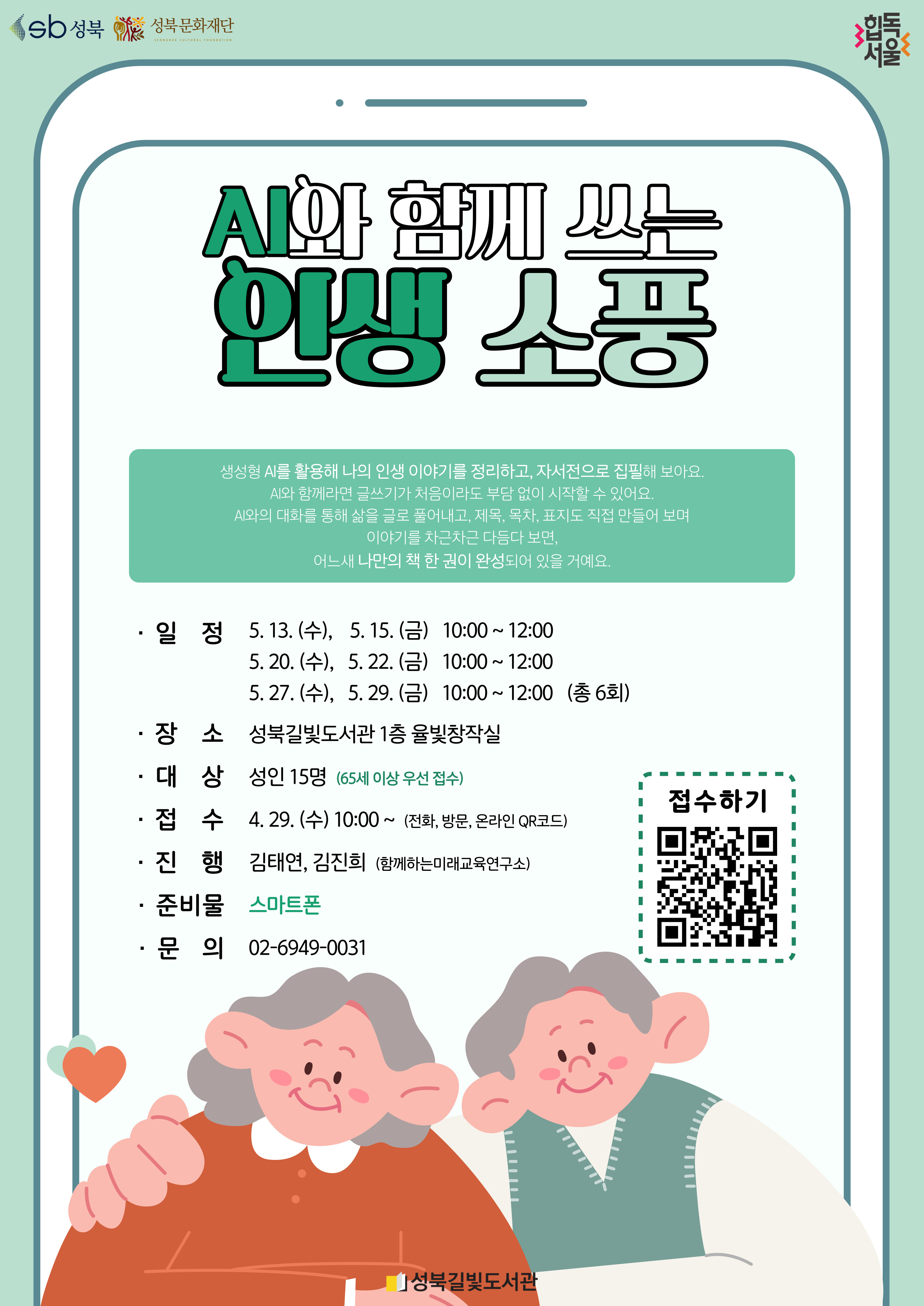 2026 성북길빛도서관 시니어 프로그램 [ AI와 함께 쓰는 인생 소풍 ]