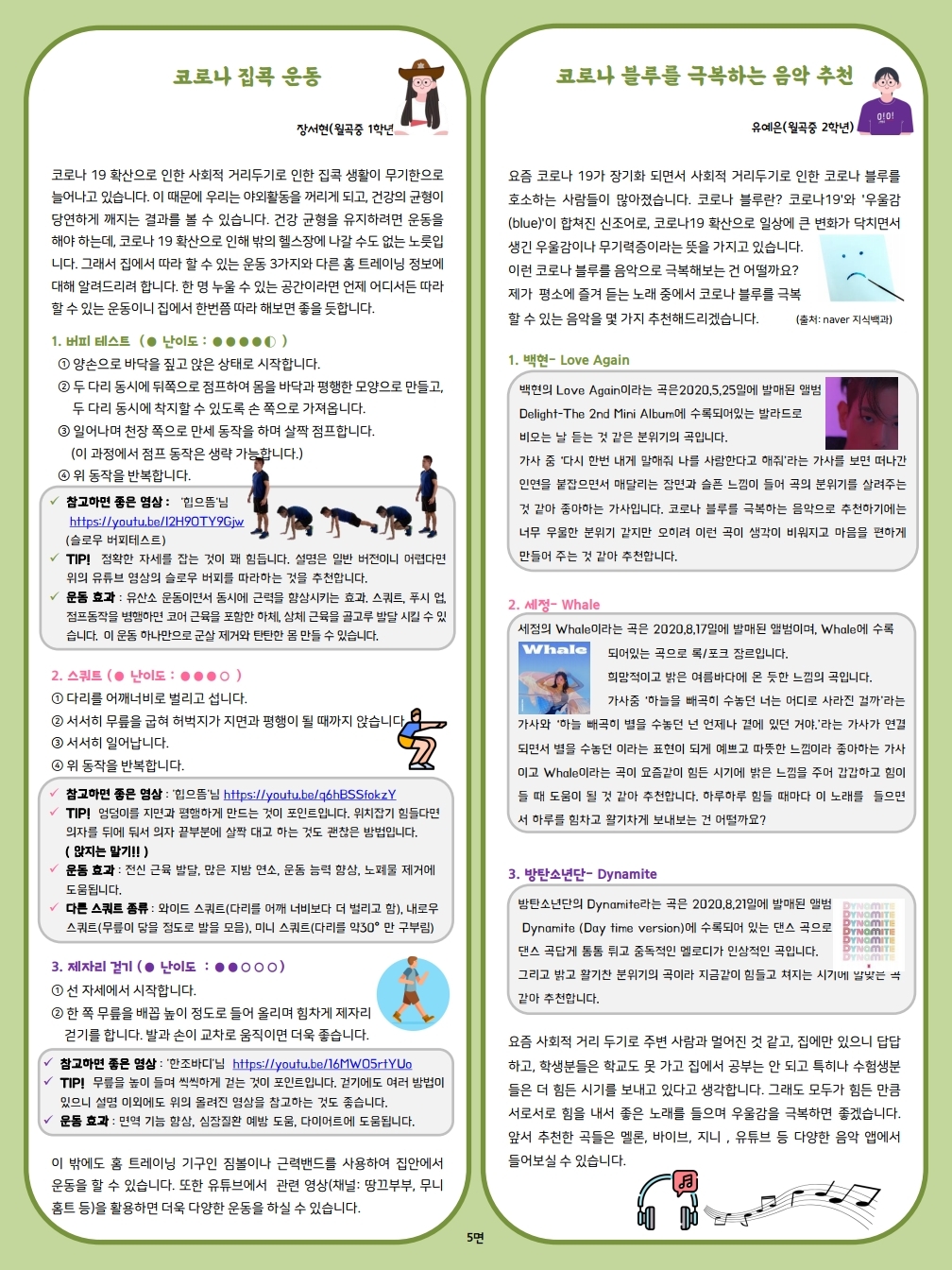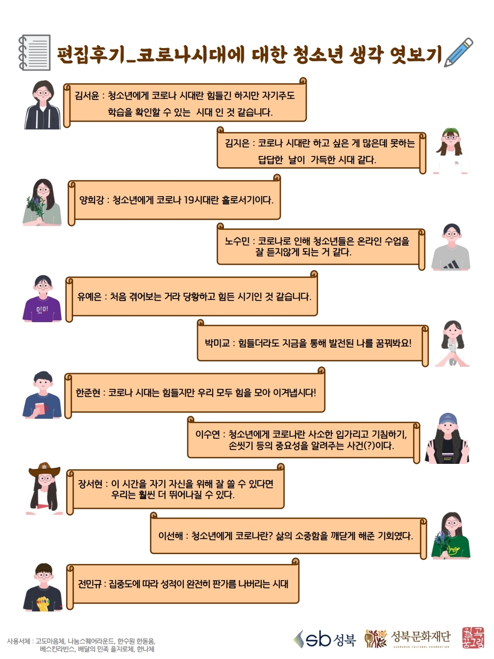 이번 가을호는 기획특집으로 코로나시대의 슬기로운 청소년 생활이라는 주제로 기사를 작성했습니다. 코로나 시대의 청소년들의 생각을 엿보실 수 있는 좋은 자료가 되리라 생각됩니다.
