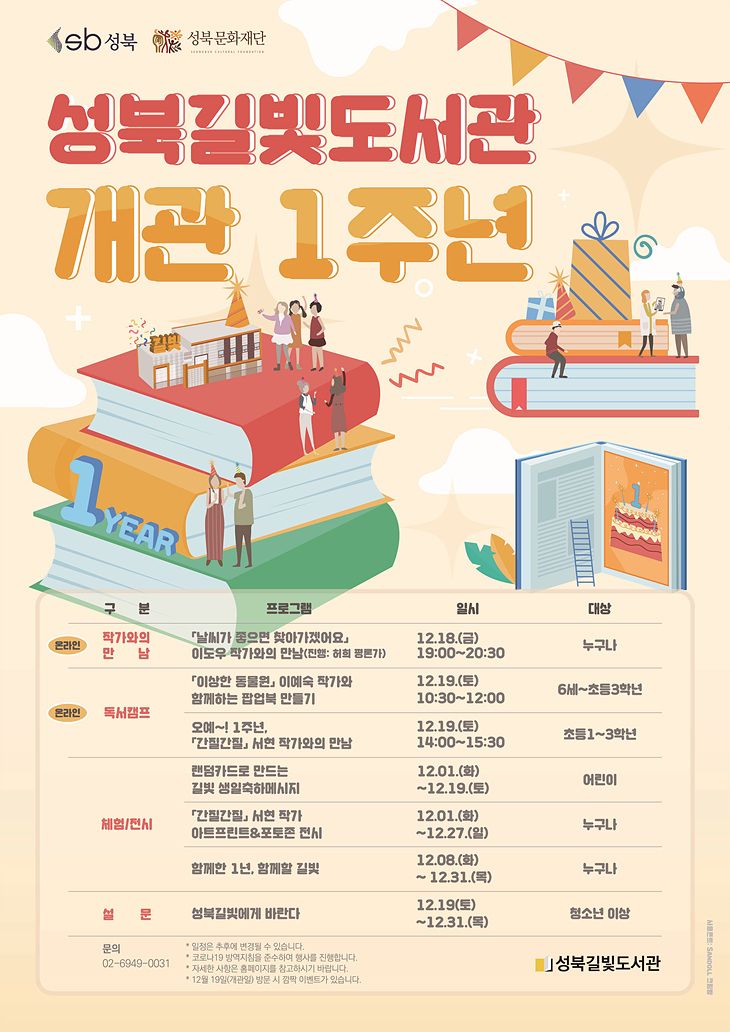 ☎ 문 의: 02-6949-0031 성북길빛도서관 |