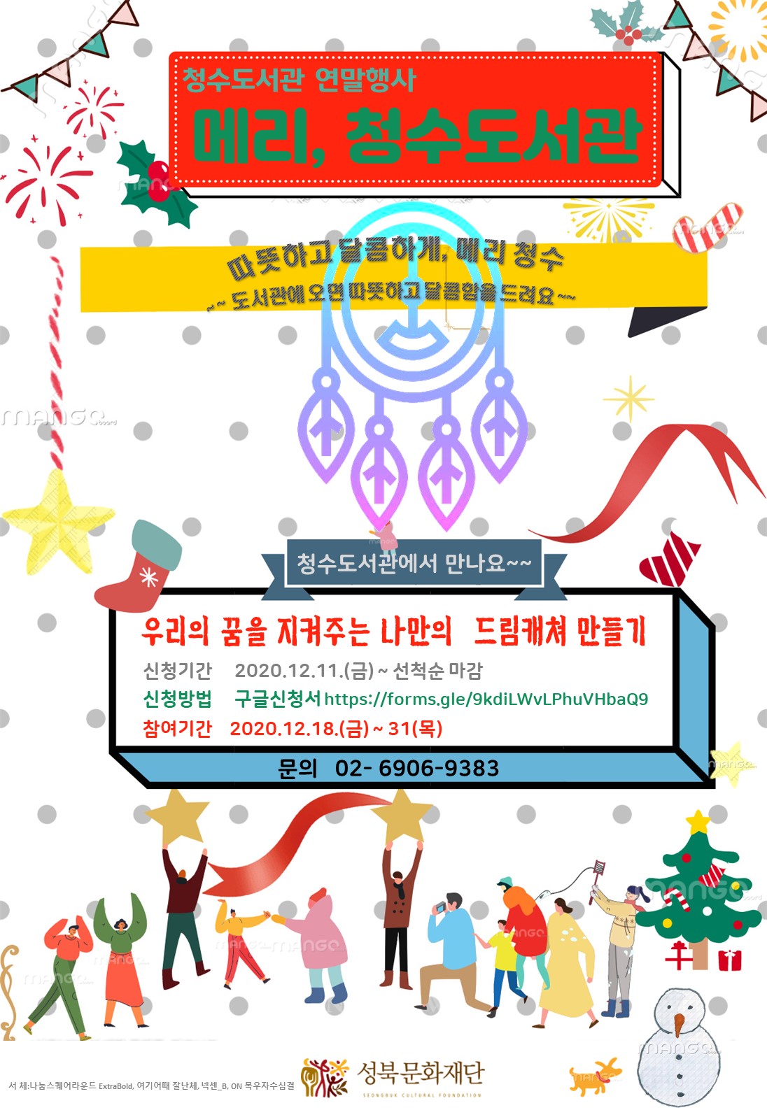 | 제목 | 마감_[안내] 우리의 꿈을 지켜주는 드림캐쳐 만들기_청수도서관 연말행사 | ||