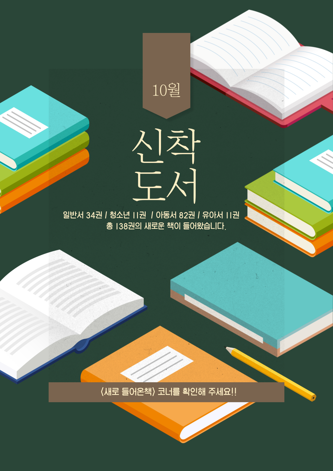 장위행복누림도서관 2025년 10월 신착도서 138권이 비치되었습니다. ^^ 신착도서는 장위행복누림도서관 데스크 앞 신착도서 코너에서 보실 수 있으며 대출 및 상호대차 등의 이용이 가능합니다. ※ 어떤 새로운 책이 들어왔을까요? 상세한 책 목록은 첨부파일을 확인해주세요!