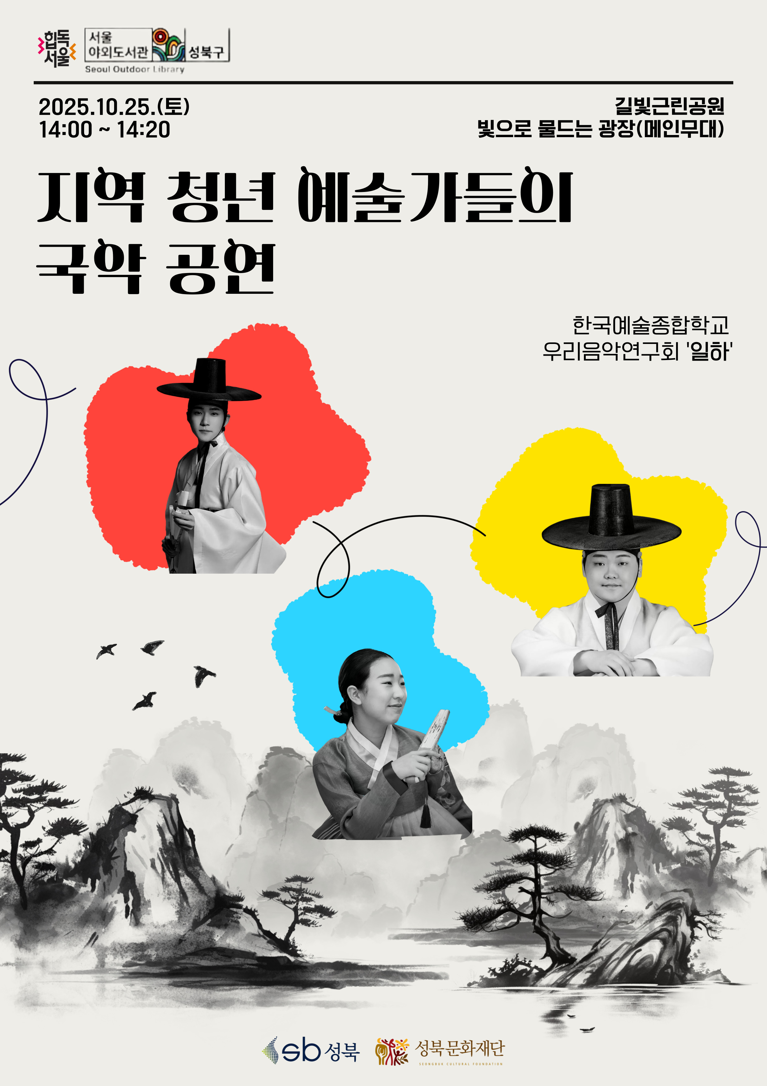 제목 | [행사] 2025 하반기 서울야외도서관 책읽는성북 : 국악공연 <지역 청년 예술가들의 국악공연> | ||