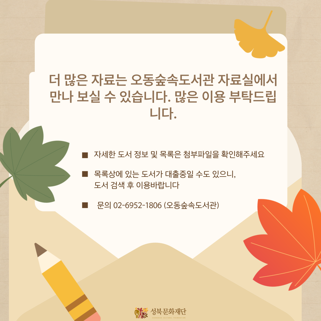 제목 | [안내] 오동숲속도서관 2025년 10월 신착도서 안내 | ||