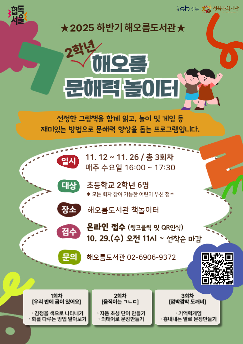 [ 초등 2학년을 위한 '해오름 문해력 놀이터' 프로그램 안내 ]