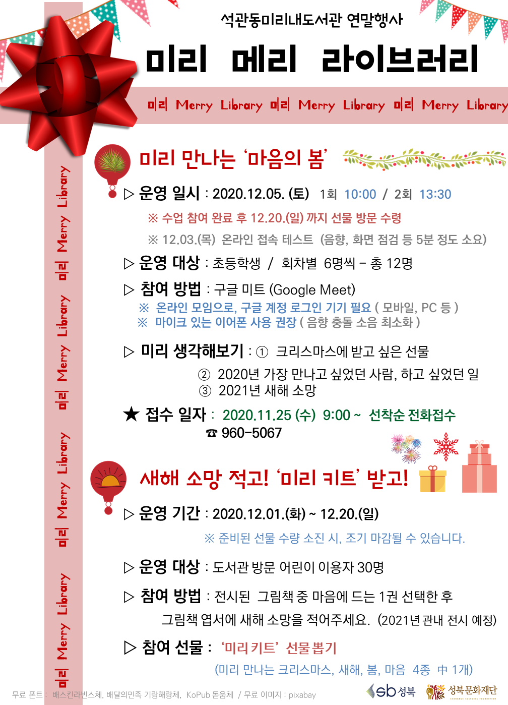 석관동미리내도서관 <미리 메리 라이브러리 (MERRY LIBRARY)> 행사에 많은 관심 부탁드립니다.