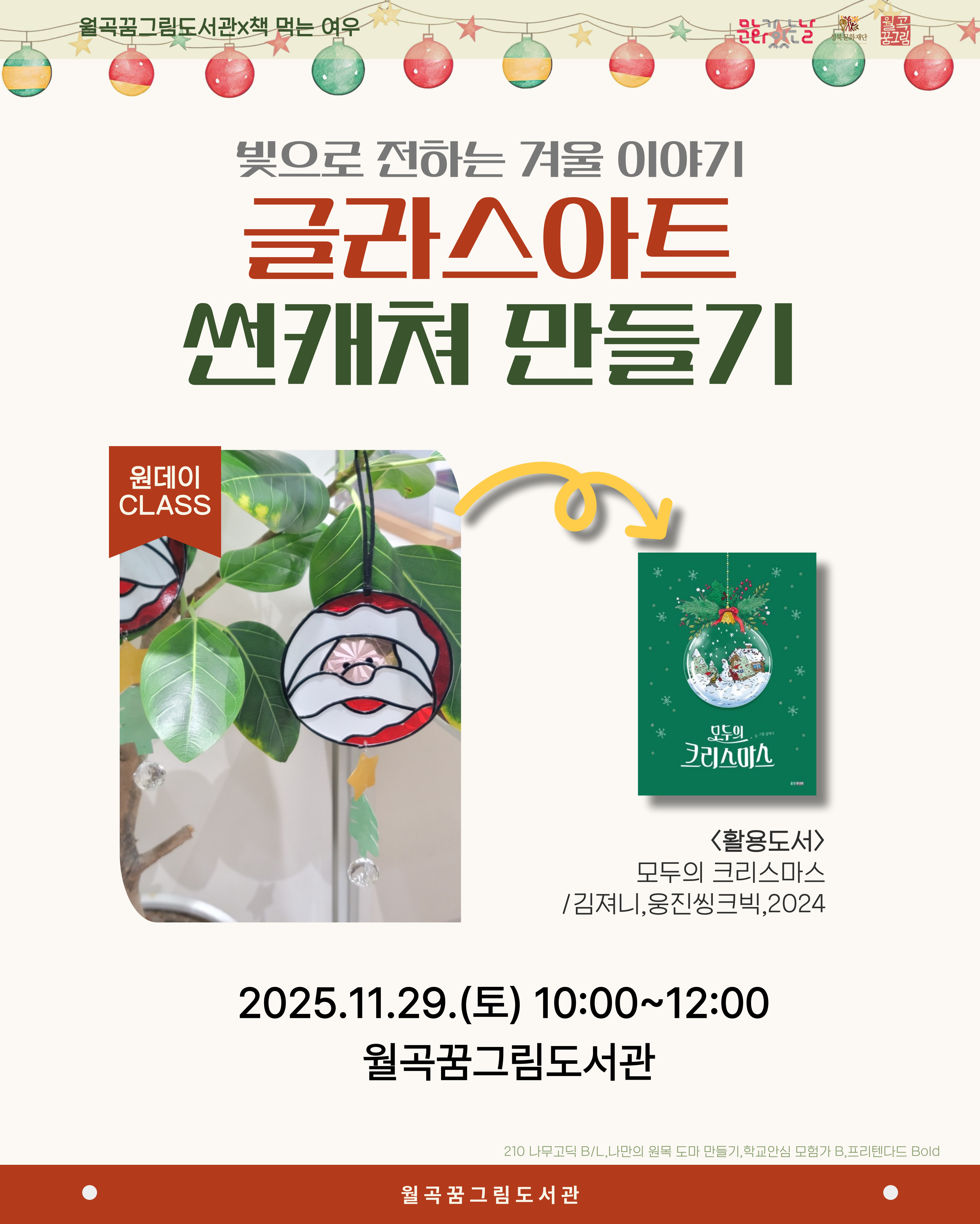 책먹는 여우가 온데이 <글라스아트 썬캐쳐 만들기> 행사일시: 2025.11.29(토) 10:00~12:00 행사장소: 월곡꿈그림도서관